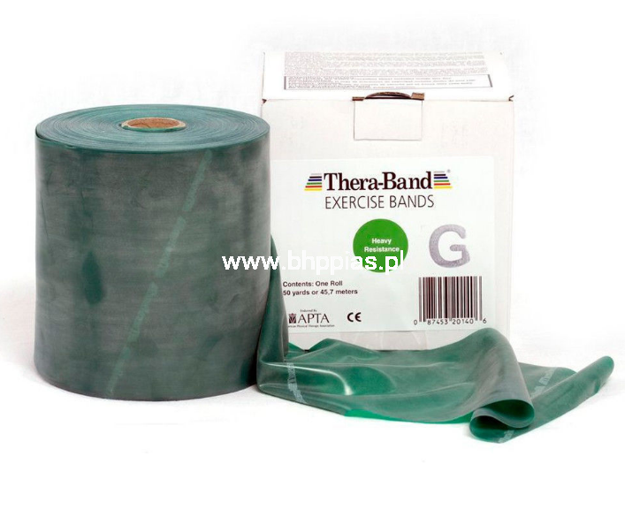 GUMA REHABILITACYJNA THERA BAND O ZWIĘKSZONEJ WYTRZYMAŁOŚCI - ROLKA 45,5M - ZIELONA (TB GIGANT GREEN)