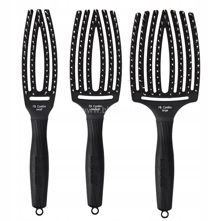Finger Brush Combo zestaw 3 szczotek do rozczesywania włosów i masażu, włosie dzika | czarna, rozmiar S, M, L