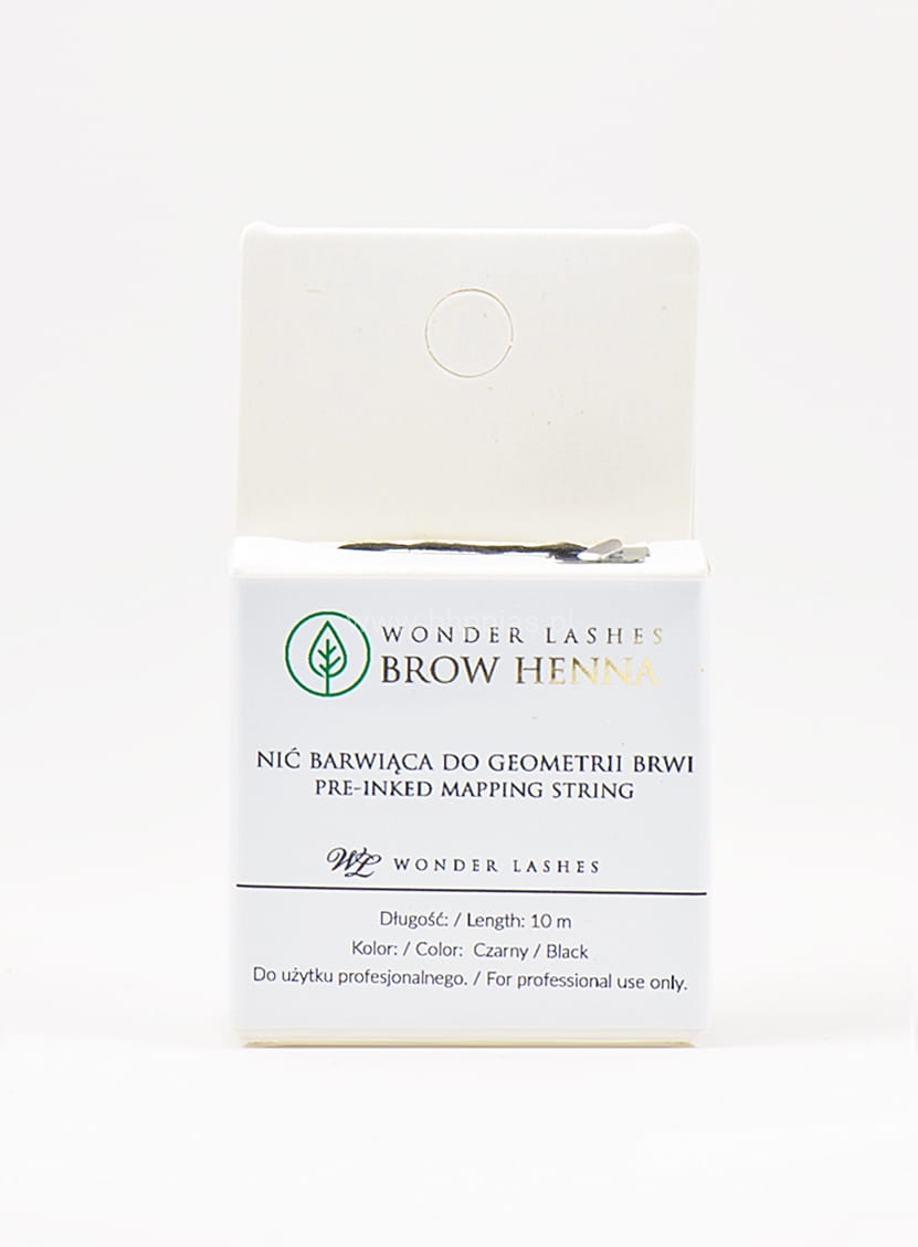 Profesjonalna nić do wyznaczania geometrii brwi. Nasączona naturalnym, czarnym barwnikiem, rozpuszczalnym w wodzie.