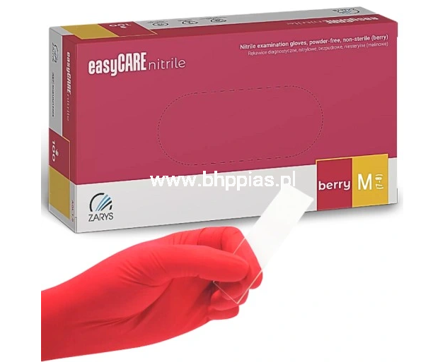 Rękawiczki nitrylowe BEZPUDROWE easyCARE berry ZARYS MALINOWE r.M 100 szt.